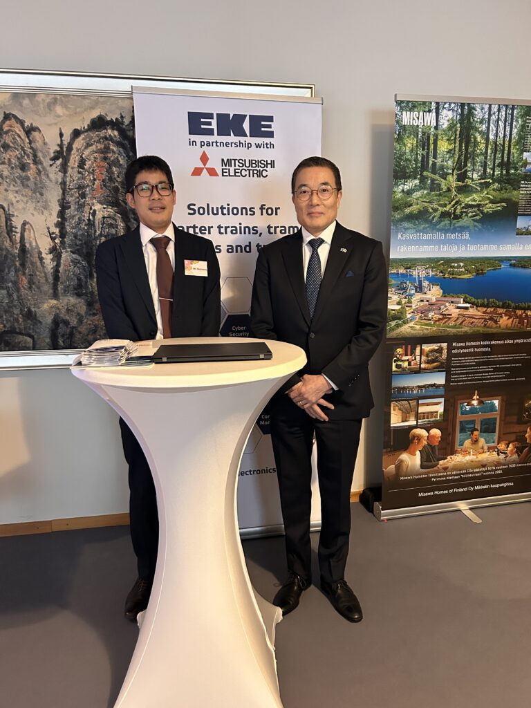 As part of the celebration, EKE‑Electronics joined a small exhibition featuring companies in Finland with strong Japanese connections. This provided a showcase to highlight our ongoing collaboration with Mitsubishi Electric. The exhibition setting enabled discussions with guests interested in railway technology and Finnish–Japanese industrial cooperation.